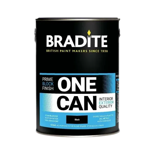Once fully cured, AVACE All‑in‑One paints form a hardwearing film that stands up well to everyday knocks and scuffs, Bradite One Can is a waterbased low odour finish particularly suited for interior and exterior walls, windows and doors and metal surfaces.