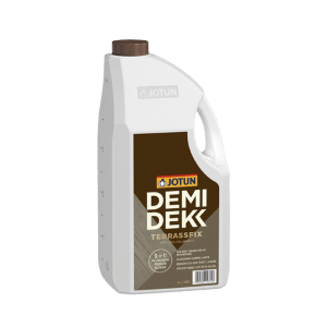 Using Demidekk Terrassfix to clean and revive weathered decking, followed by Demidekk Terrasslasyr terrace glaze, you can remove old oils and contamination, then re‑colour and protect the decking boards with a durable, water‑resistant finish which will last for up to 3 years.