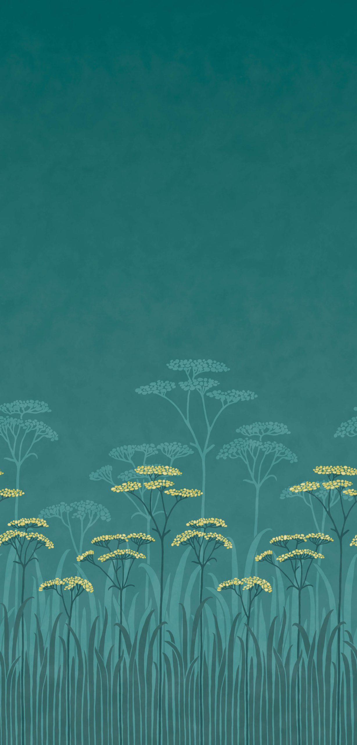 Achillea Aurora Little Greene Wallpaper Originally just a small border design, a fragment of which is kept at Felbrigg Hall in Norfolk, this pattern has been completely transformed in scale. Depicting silhouetted stems and flowerheads of yarrow, or perhaps the locally abundant marsh sow-thistle, the style is distinctly Art Nouveau and the flat colours are typical of a screen-printed design. Besides a radical shift in size, the stunning colour treatment of Achillea’s five modern colourways make this suitable as either a backdrop or focal point for contemporary rooms.