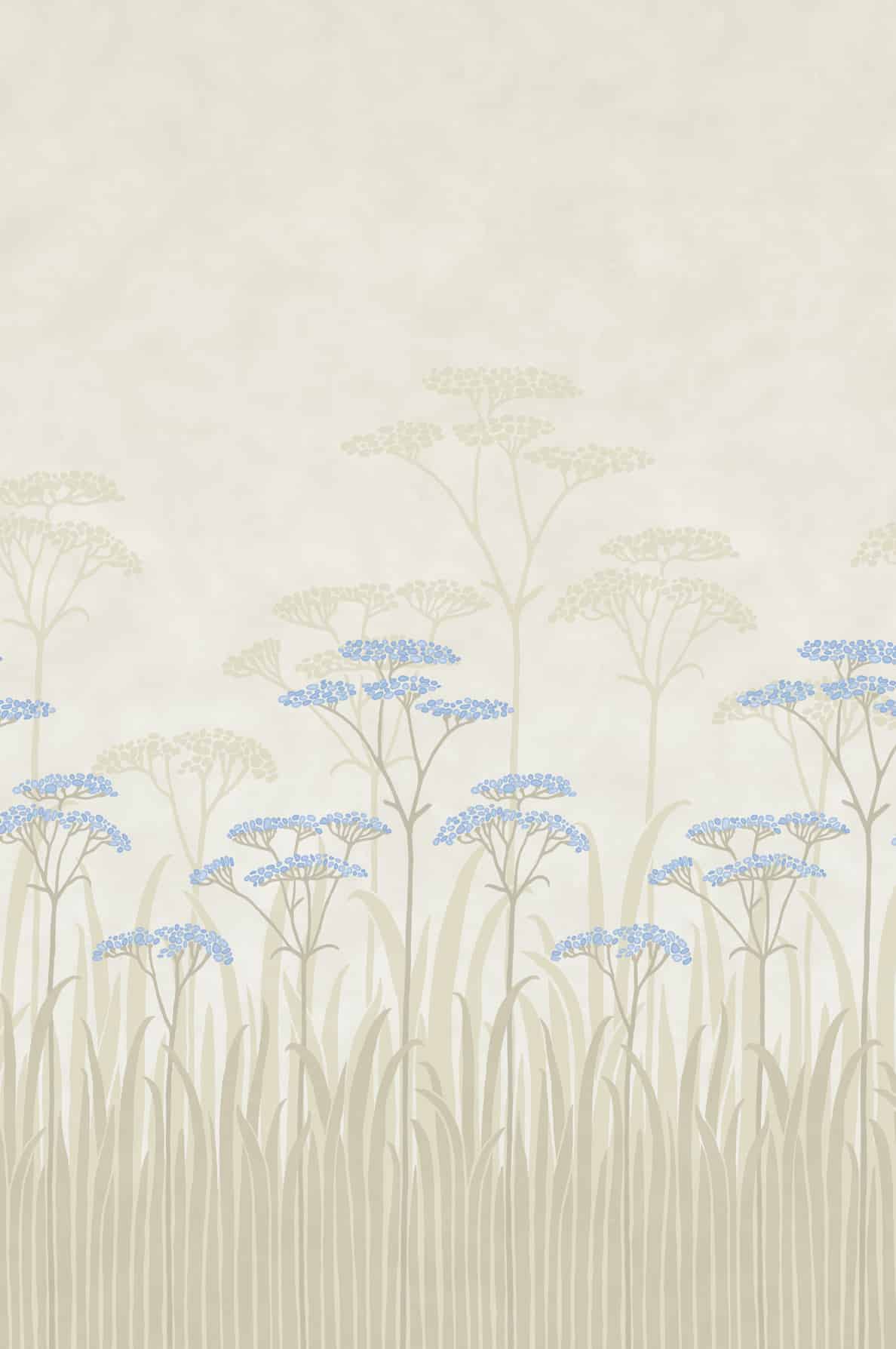 Achillea Dew Little Greene Wallpaper Originally just a small border design, a fragment of which is kept at Felbrigg Hall in Norfolk, this pattern has been completely transformed in scale. Depicting silhouetted stems and flowerheads of yarrow, or perhaps the locally abundant marsh sow-thistle, the style is distinctly Art Nouveau and the flat colours are typical of a screen-printed design. Besides a radical shift in size, the stunning colour treatment of Achillea’s five modern colourways make this suitable as either a backdrop or focal point for contemporary rooms.