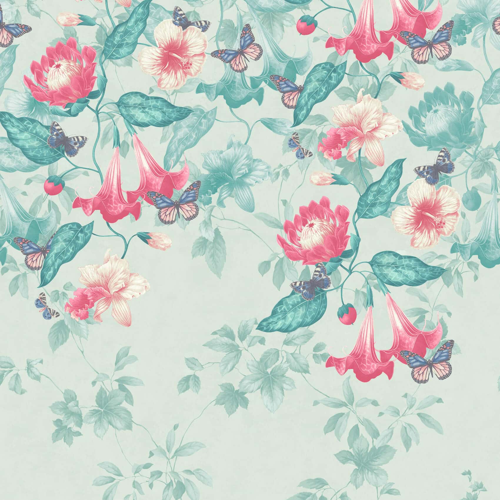 Asterid Island Unlike most of the source material for Little Greene wallpapers, this design is not drawn from a conventional pattern but rather is a reinterpretation of a fine illustrative painting from the mid-20th century. It represents the high-society trend for hand-painted murals, which were the precursor to commercial wallpapers. The fine detail of the original painting, combined with an ability to print this as a three-panel design, provides a cleverly repeating floral trail with the sensibility and touch of a fine artist. Available in four colourways.