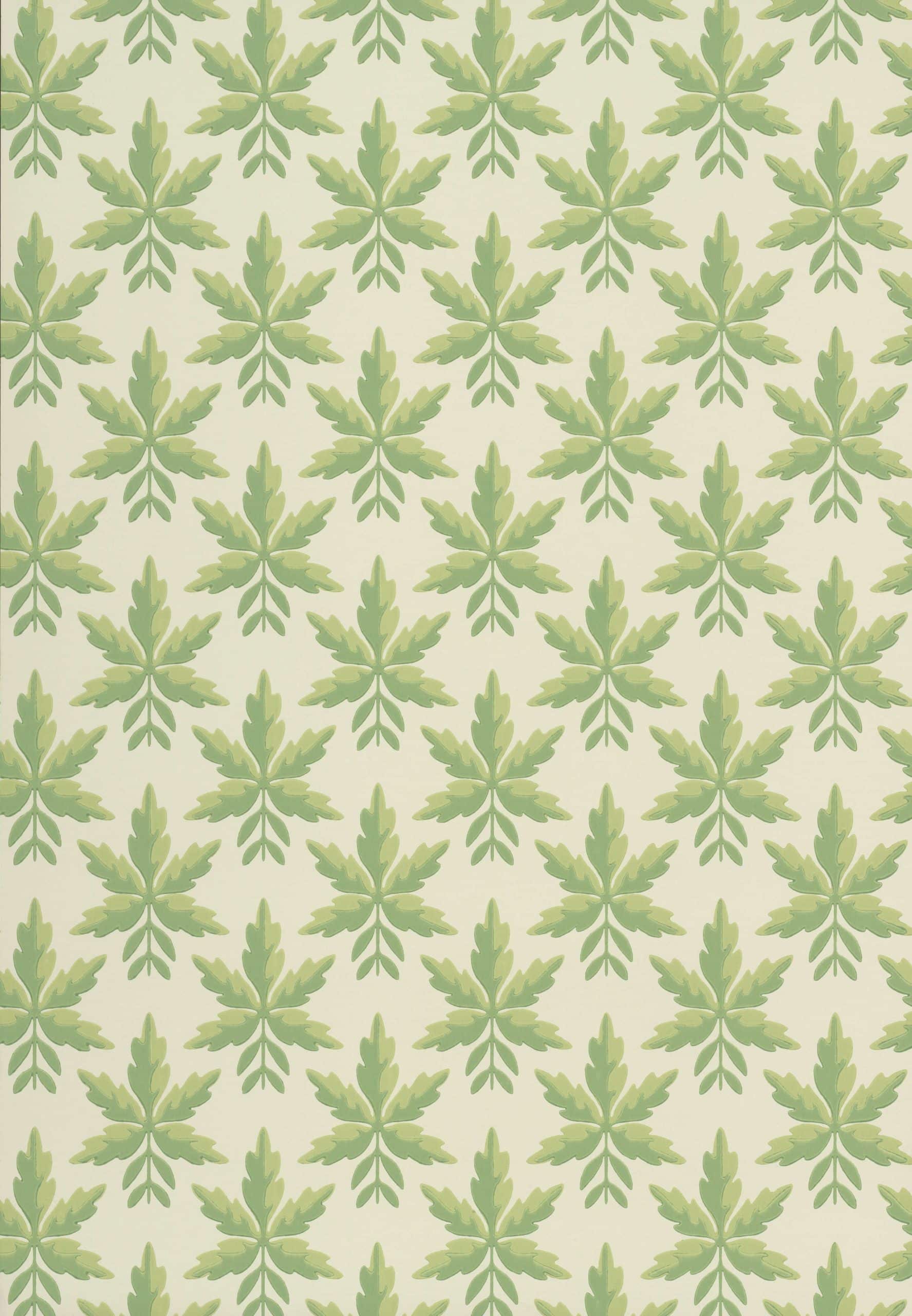 Clutterbuck Lodge Little Greene Wallpaper The simple pattern featured two varying shades of green on a white satin background, creating the illusion of woven fabric and, interestingly, has been matched to a paper from the clock tower at Hampton Court Palace.