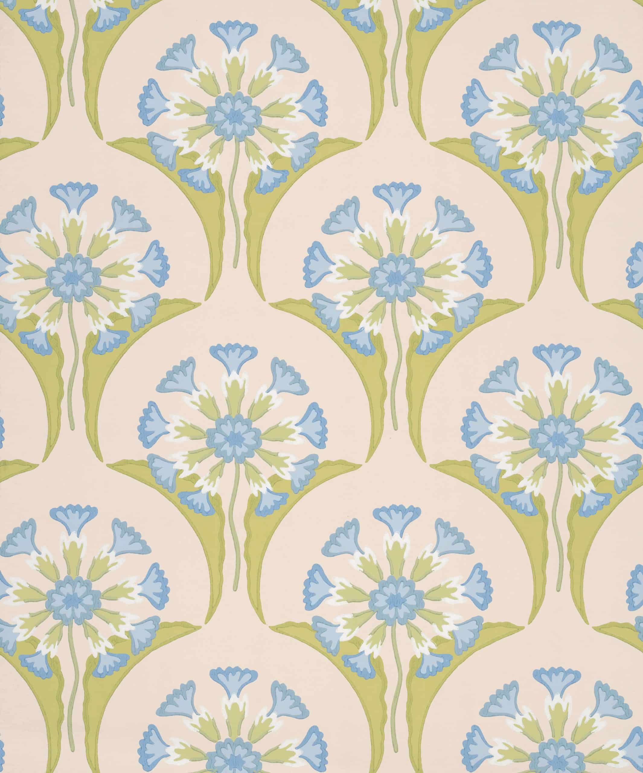 Hencroft Blue Primula Little Greene Wallpaper This design – a stitched, repeating pattern of stylised cowslips – was found at Wardle’s school of embroidery in Leek, and has been effortlessly translated into a wallpaper design in eight stunning colourways.