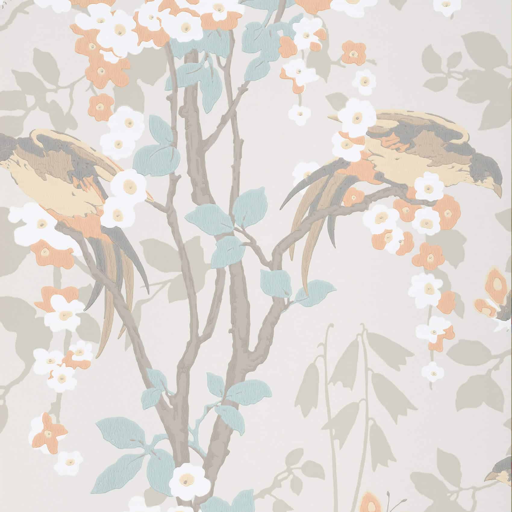 Loriini Tuscany A surface-printed design featuring exotic Lory birds and oriental blossom, which has been inspired by a charismatic 20th century piece held by the Whitworth Art Gallery in Manchester. The exotic subject matter and almost symmetrical repeat are typical of 1930s designs and reflect the aspirations of travel to distant lands and a show of wealth to visitors to the house. Although recoloured for today’s home, the selected colourways bear testament to the use of bright colours, commonplace in the 1930s, and the Lory may have been chosen as a subject on these grounds alone! Available in five colourways.