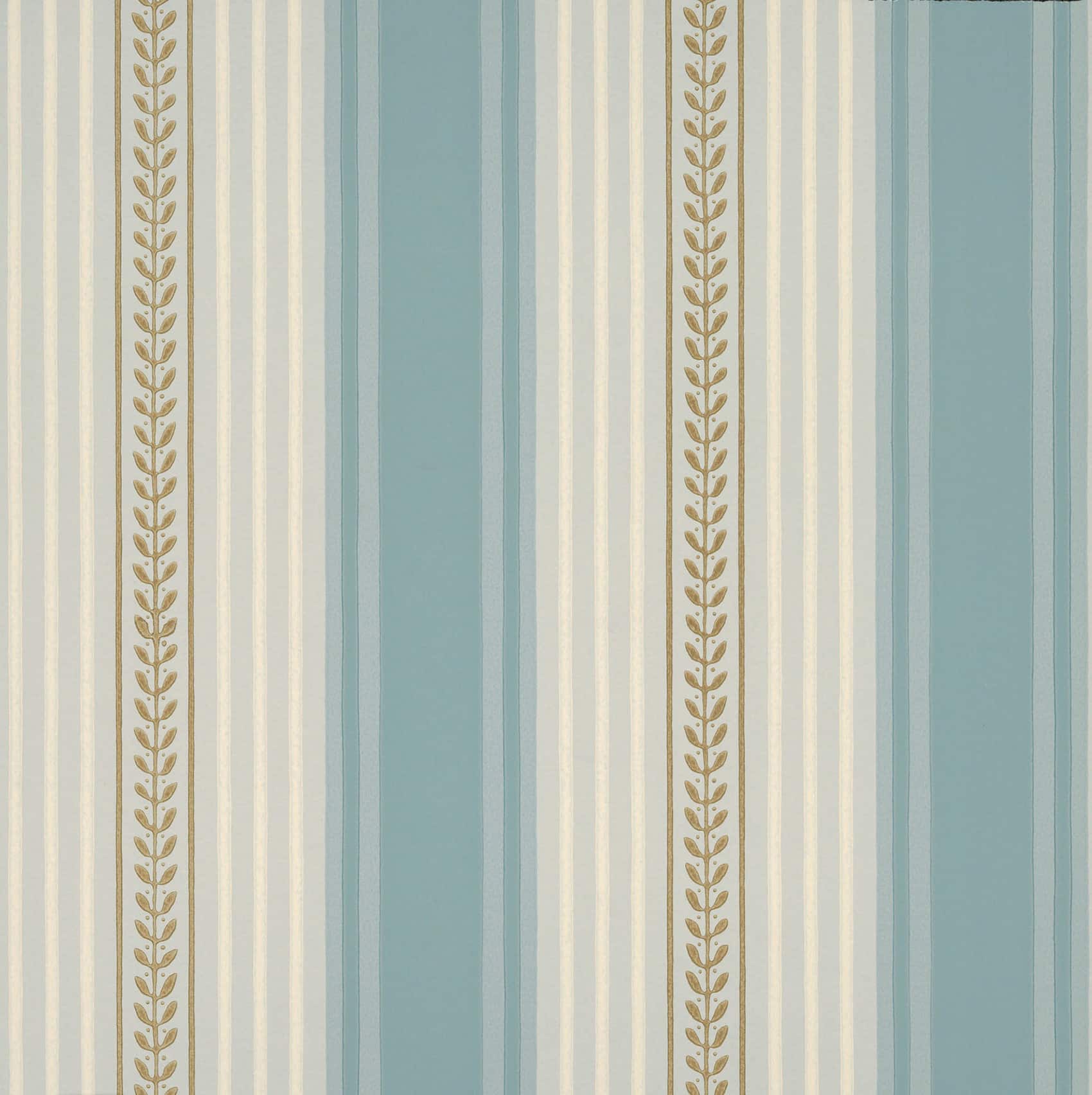 Maddox St Blue Dusk Little Greene Wallpaper A classic Regency Stripe, which was recovered from the oldest surviving terrace house in Maddox St, Mayfair, a property built around 1715. The paper was found in the second floor front room, most likely used as a bedroom; it was the oldest paper in a ‘sandwich’ of no fewer than 17 layers and dates to around 1810 or possibly even slightly earlier.