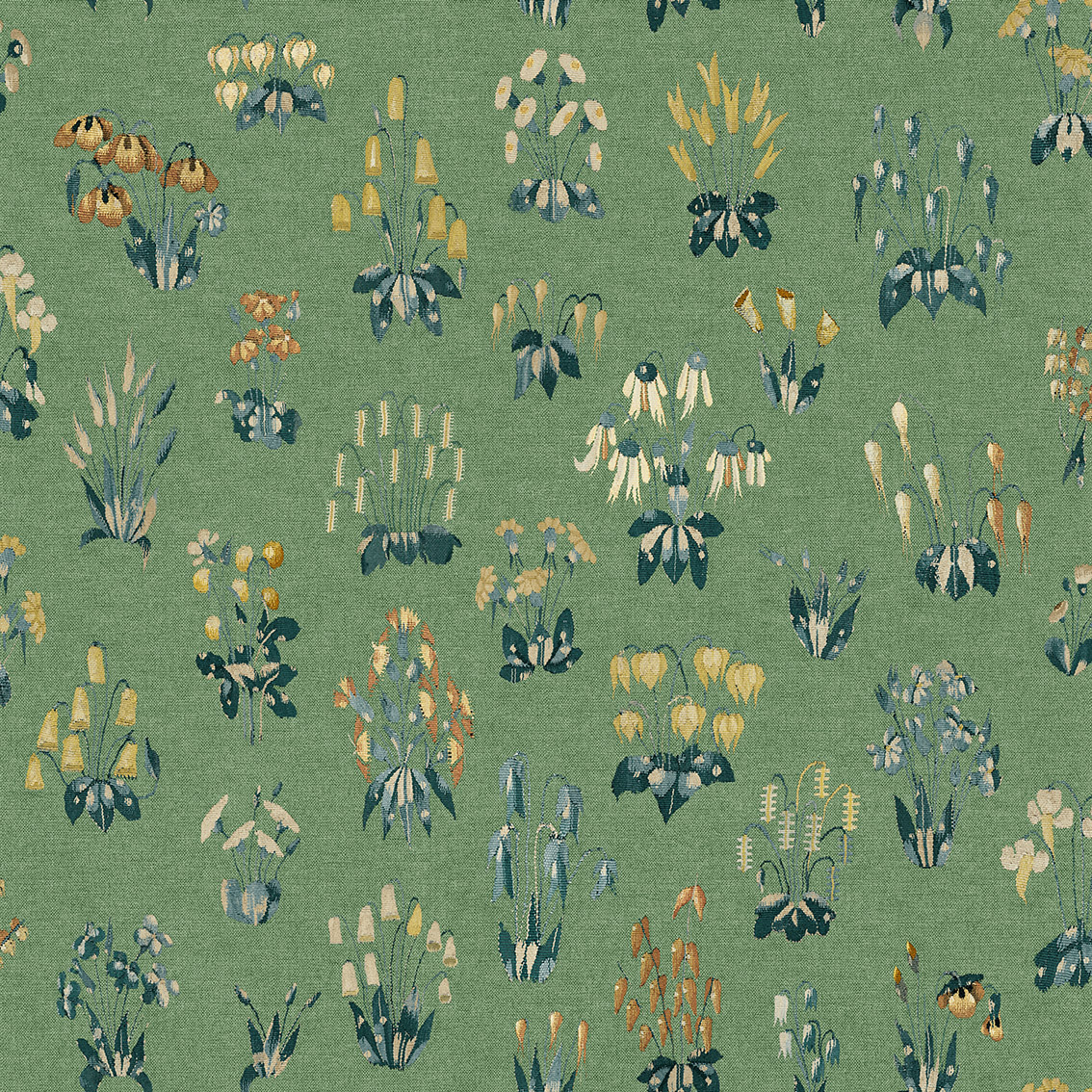 Millefleur Garden Little Greene Wallpaper Millefleur’ (Montacute House) c.1478 The floral detail in this design is drawn directly from an incredibly rare, important and lovingly-conserved object, the oldest tapestry in the care of the National Trust. Residing at Montacute House in Somerset, the 10m2 piece is woven from wool and silk and depicts a knight against backdrop of hundreds of tiny flowers on a dark background. It was made in the 15th century as part of a much larger set, and given by the city of Tournai, in Belgium, to Jean de Daillon, a French nobleman and Governor of Dauphine.