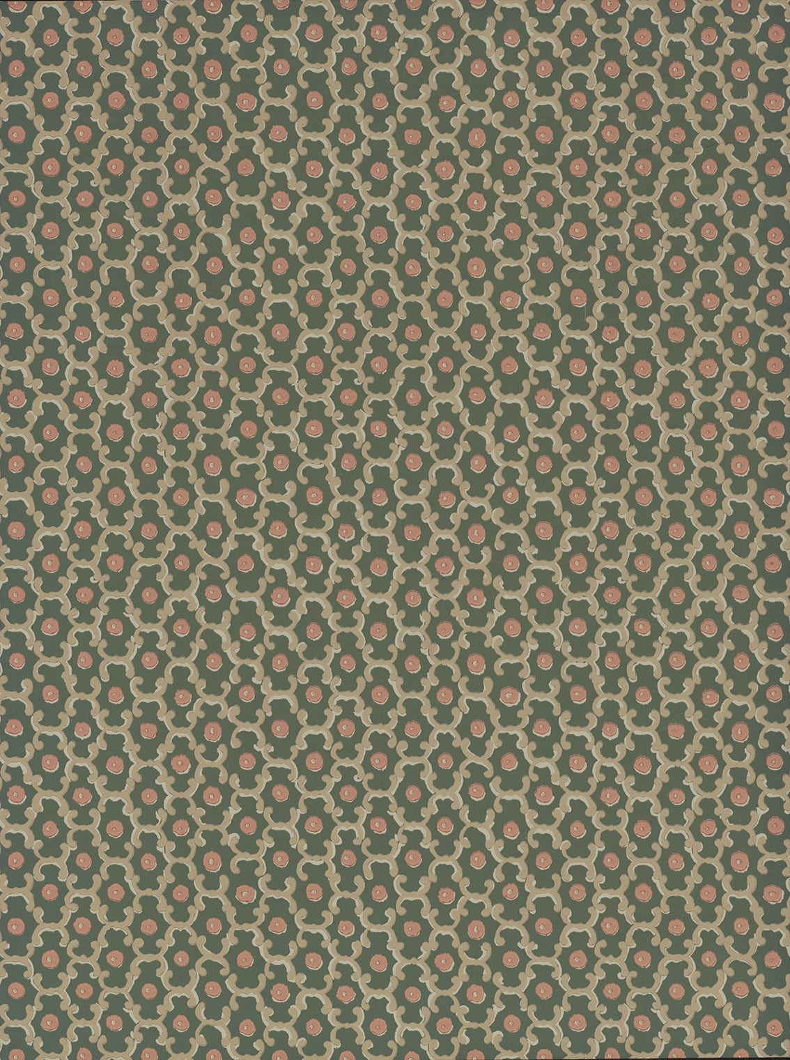 Moy Pompei Little Greene Wallpaper ‘Moy’ (The Argory) c.1875 Little is known about this small-scale print found at The Argory, just outside Moy in Northern Ireland. The surviving fragment is estimated to be late-19th century in origin, and was printed using diluted watercolours rather than a more conventional, substantial ink or even opaque paint. This slightly broken effect, combined with the shadowing seen within the loose geometric pattern, gives a life to the design that would be difficult to achieve straight from the drawing board.