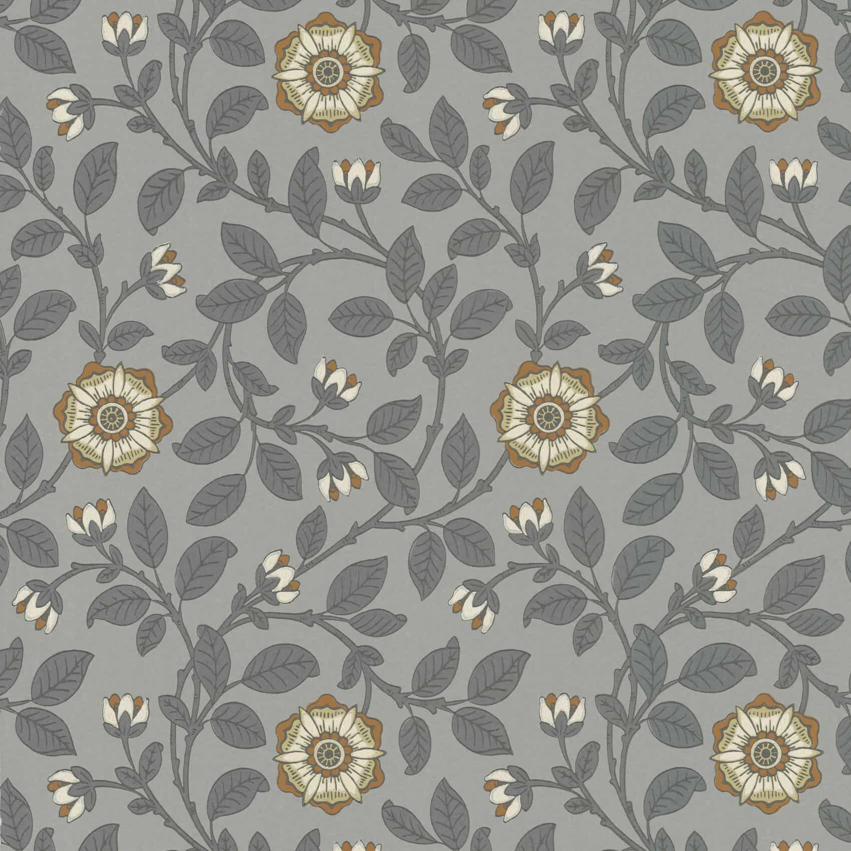 Richmond Green Platinum Little Greene Wallpaper Unbefitting to the quality of this 19th century paper, the surviving sample was retrieved, not from the walls of a smart Richmond townhouse, but from a skip outside it, during a 1989 refurbishment. A delicate tudor rose, the execution is typical of many designs produced in the style of William Morris in the late 19th century. Little Greene has printed it in two authentic Arts & Crafts colourways, three classic colourways and a modern metallic.