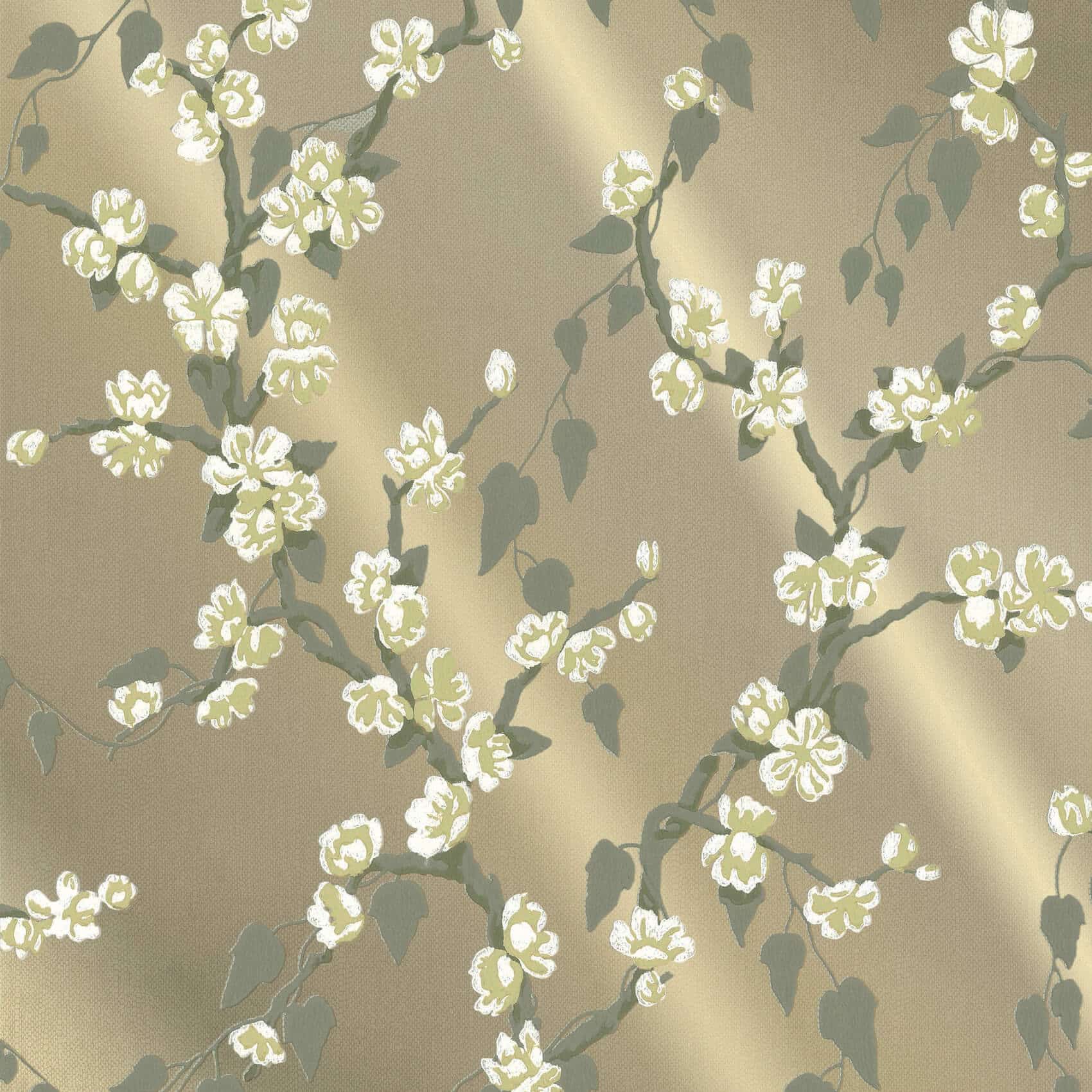 Sakura Metal Lustre Little Greene Wallpaper Sakura (c1936) is a pretty trail of matt leaves and delicate blossom originating in France. The surface detail has been retained, contributing to its charming layered depth, whilst the colouration has retained an elegant, seductive informality. A mica ground has been used on some colourways to exaggerate the interplay of light and contrast on the surface of the paper.