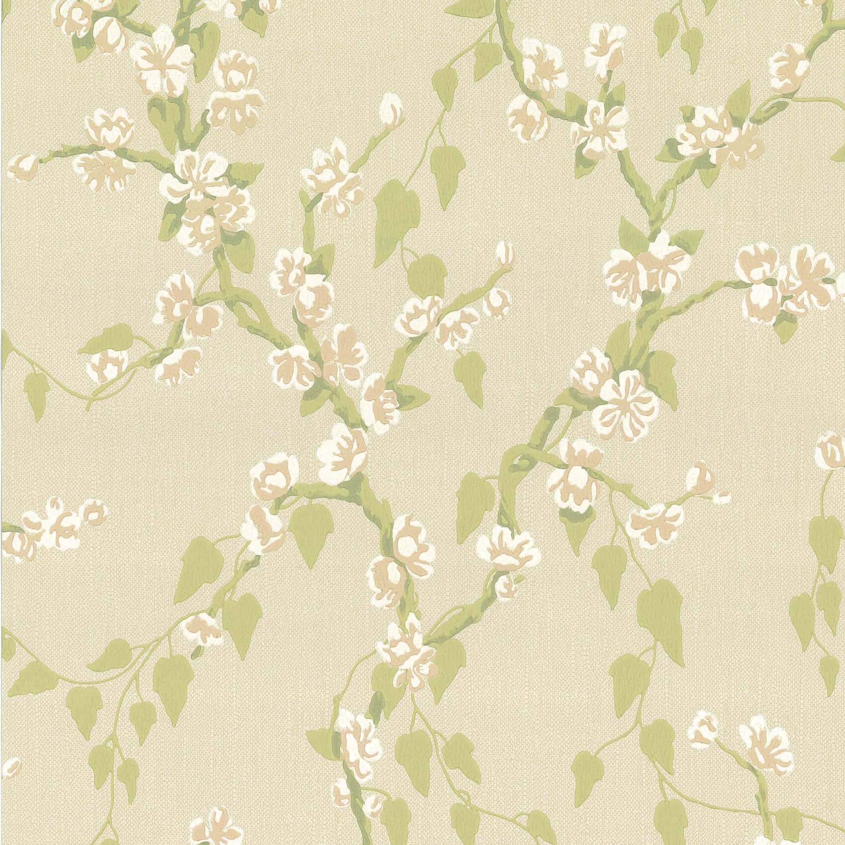 Sakura Pomme Little Greene Wallpaper Sakura (c1936) is a pretty trail of matt leaves and delicate blossom originating in France. The surface detail has been retained, contributing to its charming layered depth, whilst the colouration has retained an elegant, seductive informality. A mica ground has been used on some colourways to exaggerate the interplay of light and contrast on the surface of the paper.