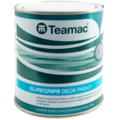 Teamac Suregrip Anti-Slip Deck Paint provides a Rough Anti-Slip Finish on Yachts, Power Boats, Cruisers and Narrowboats. It is an air drying ready mixed aggregated deck coating providing superior grip in marine environments. It is a safety coating for use interior and exterior to prevent slips and falls. It is ideal for pedestrian or light mechanical traffic suitable for wood, metal, concrete, GRP and other suitably prepared surfaces.