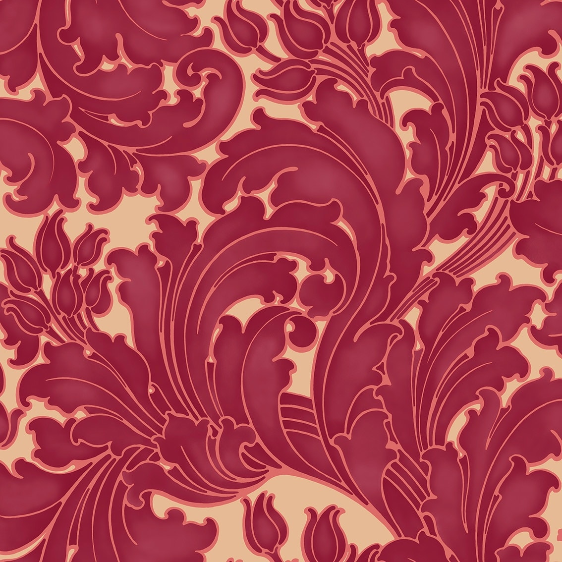 Tulip Theatre Little Greene Wallpaper ‘Tulip’ (Erddig) c.1898 Considered to be one of Britain’s finest country houses, Erddig, just outside Wrexham in North Wales, is home to an abundant collection of wallpapers. Some still adorn the walls of the state rooms, but many more have been found as samples in tea-chests in the attic rooms. At the turn of the 20th century, they were collected by Philip and Louisa Yorke, who were recently married and committed to the redecoration of Erddig, their new family home. This pattern of scrolling foliage is unusual in its execution; the graded colour which gives life and depth to the leaves was, even in 1898, a contemporary evolution of the traditional, flat damask design.”