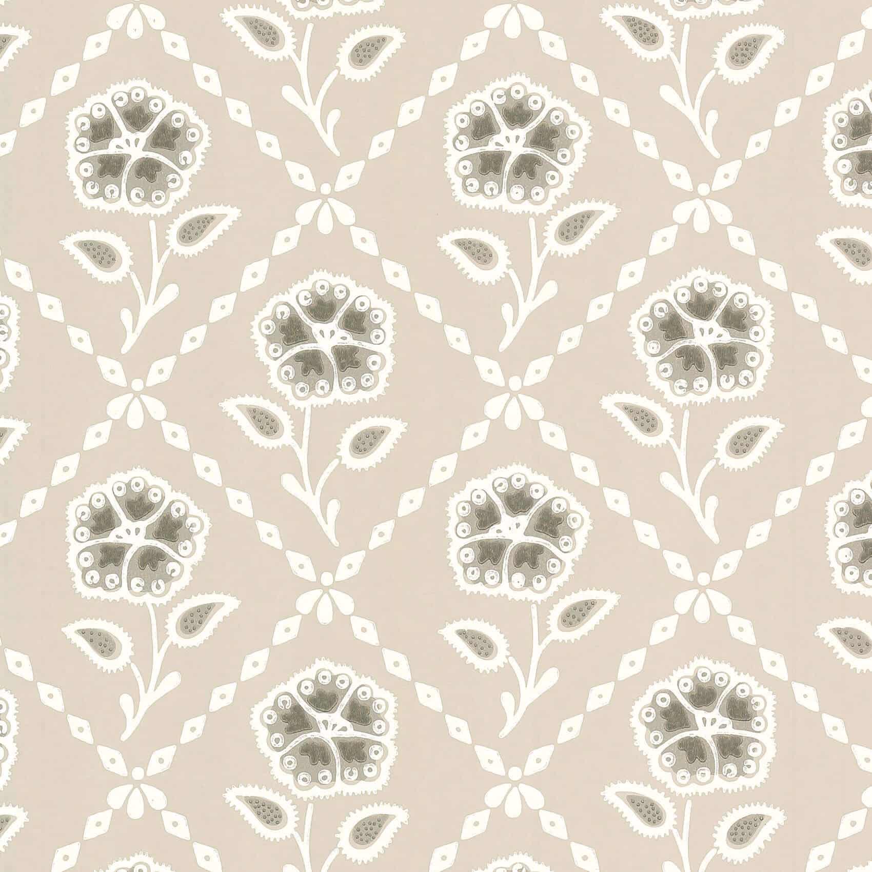 Whitehall Pebble Little Greene Wallpaper Found in a medieval property that was at one time home to a Surrey school, there is a clear French influence in this paper. The floral trellis pattern is undoubtedly inspired by textile design; printed linen and fustian fabrics in this style became very popular during the mid 18th Century.