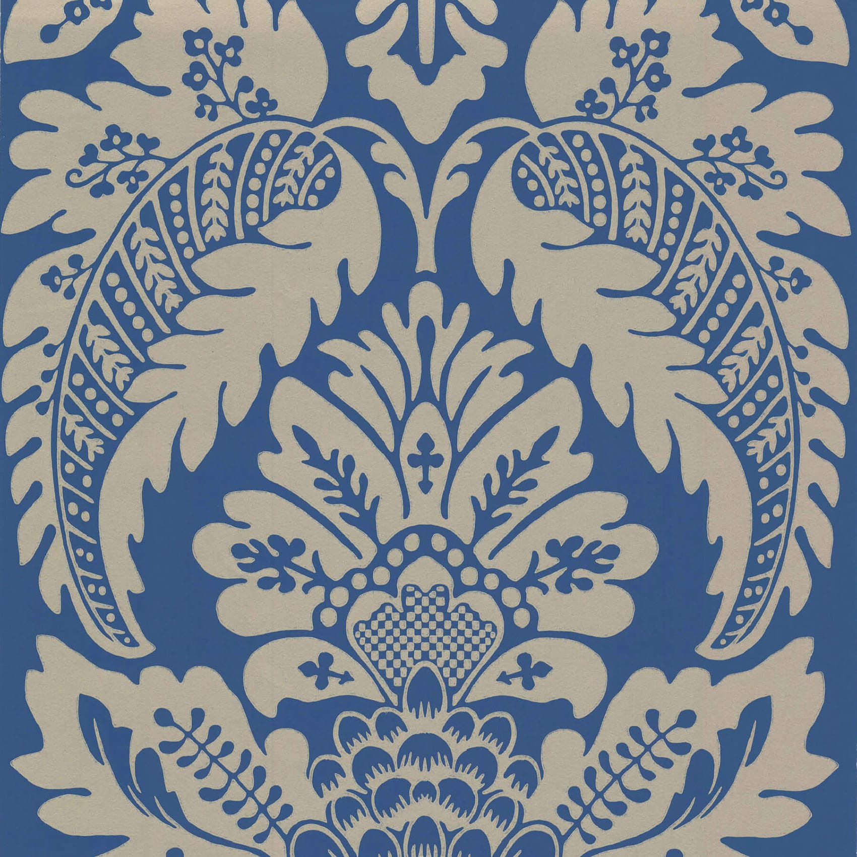 Wilton Sovereign Little Greene Wallpaper A classic damask design that is very typical of the popular large-scale pomegranate patterns of the mid-18th century, this would originally have been a flock wallpaper and hung in a grand English home. Flock papers were an English speciality and were really just imitations of expensive textiles, but nonetheless, they were expensive to produce and a bold statement of luxury and social status.